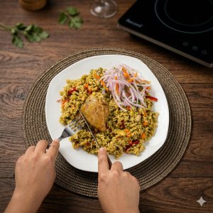El arroz con pollo peruano es uno de los platos más representativos de la gastronomía del Perú, reconocido por su color verde característico gracias al culantro y por su sabor intenso y equilibrado. Esta receta combina arroz graneado, presas de pollo jugosas y verduras, logrando una preparación completa, nutritiva y muy apreciada en la cocina casera.